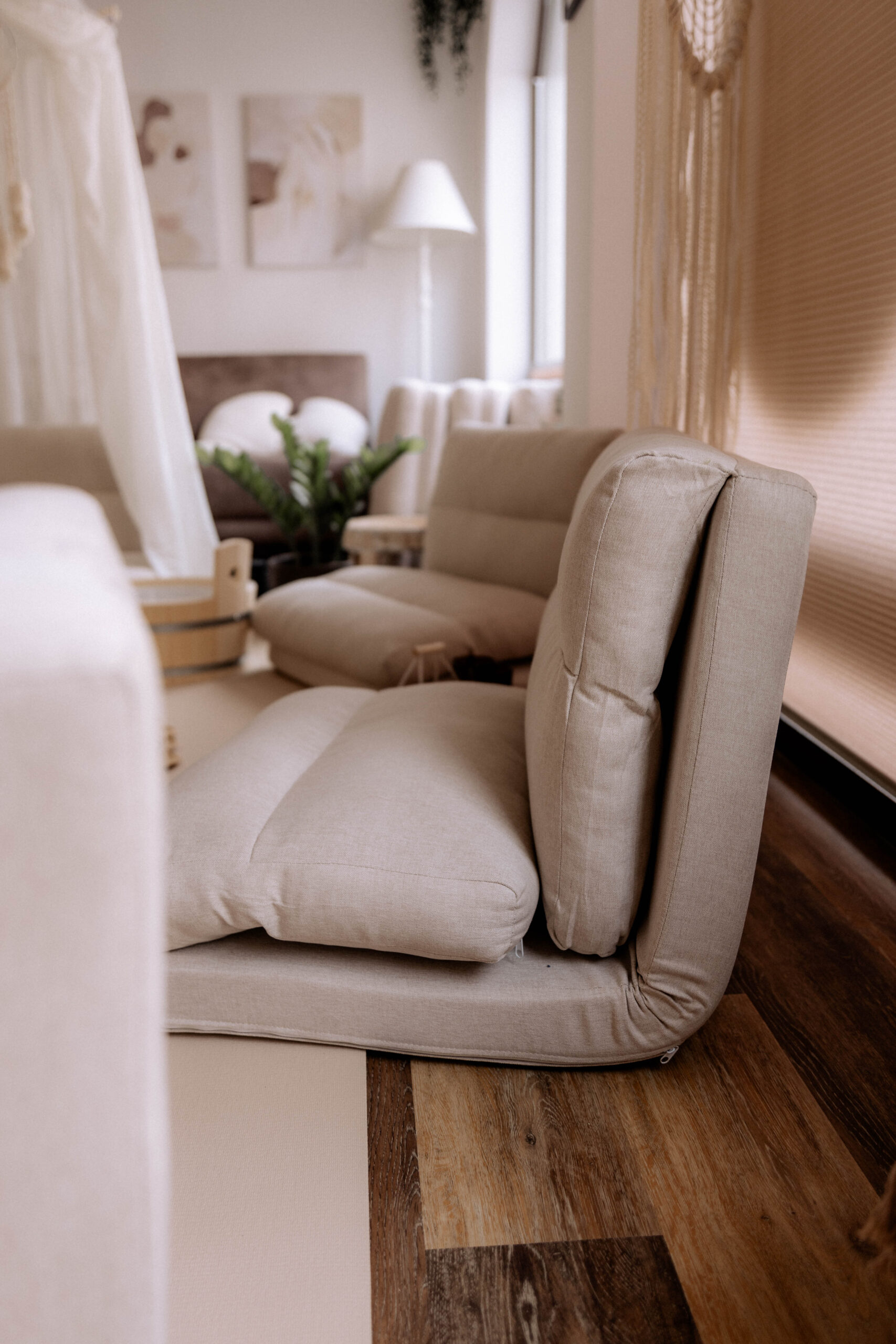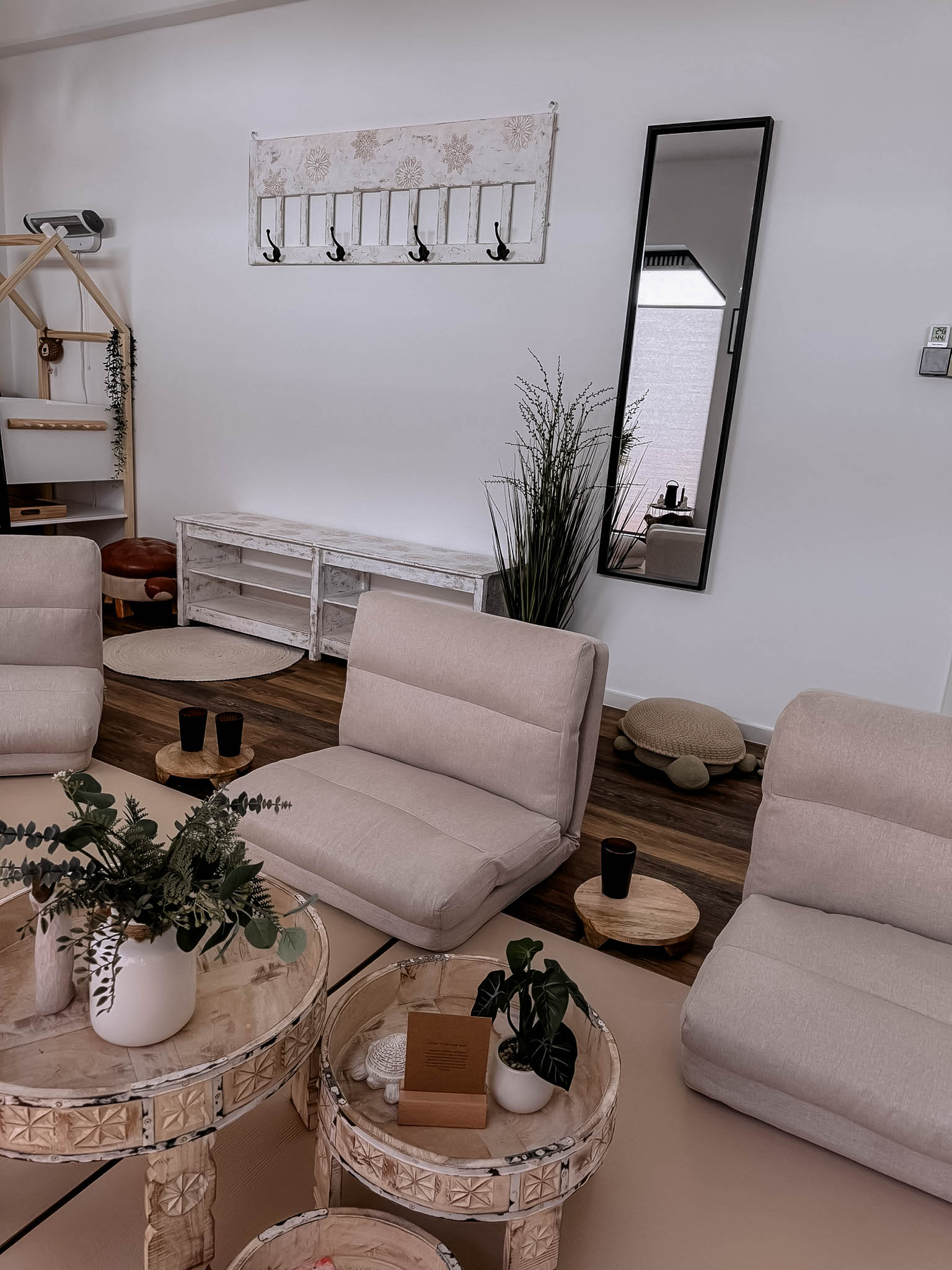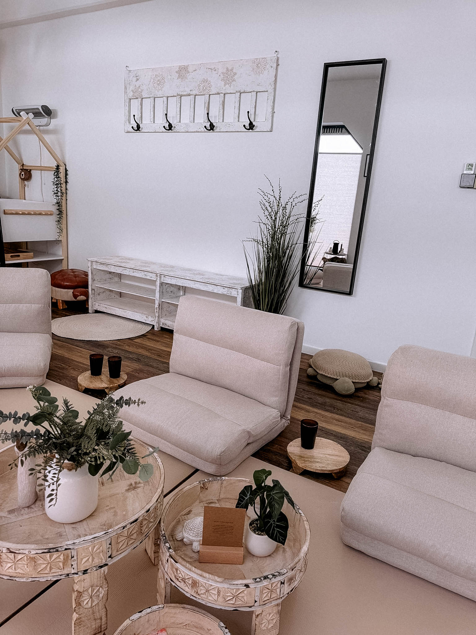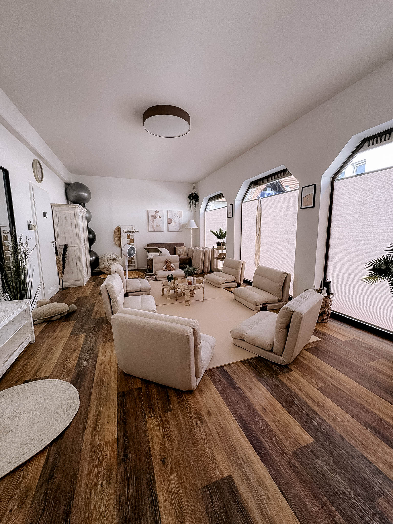 In meinem Kursraum habe ich viel Wert auf eine gemütliche und entspannte Atmosphäre gelegt, damit Ihr Euch wohlfühlt. Bequeme Sitzpolster laden zum Verweilen ein, und für die Kleinsten steht ein Wickeltisch bereit. Da drinnen keine Abstellmöglichkeiten für Kinderwagen bestehen, könnt ihr diese bequem im Hof hinter dem Haus abstellen.